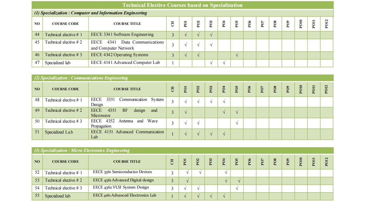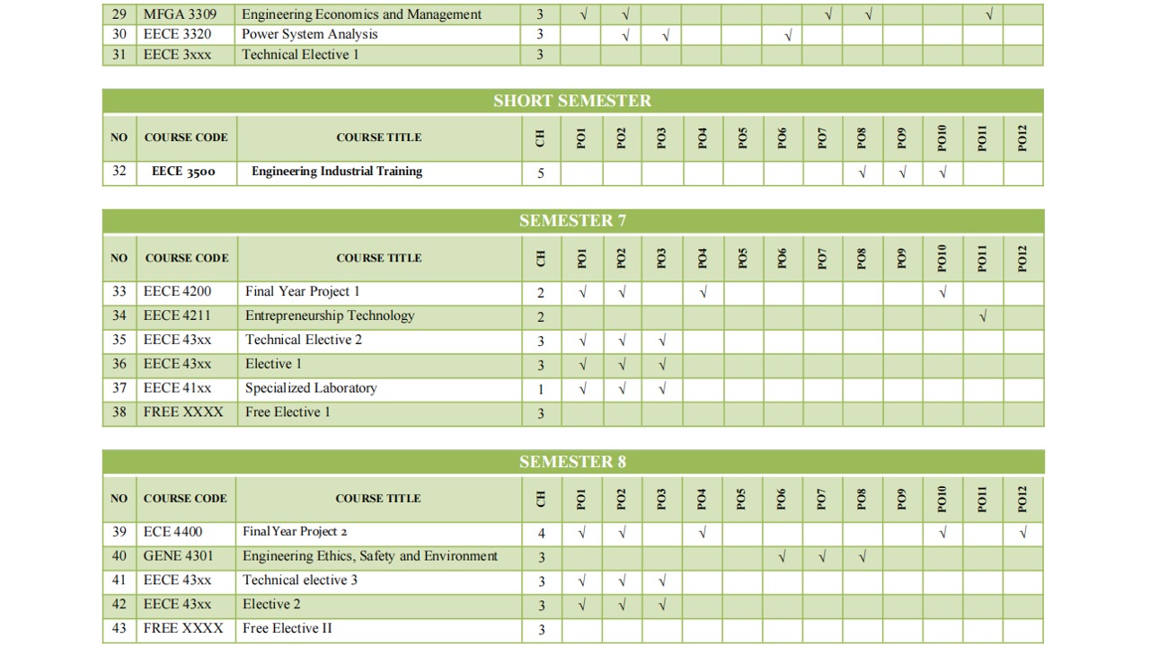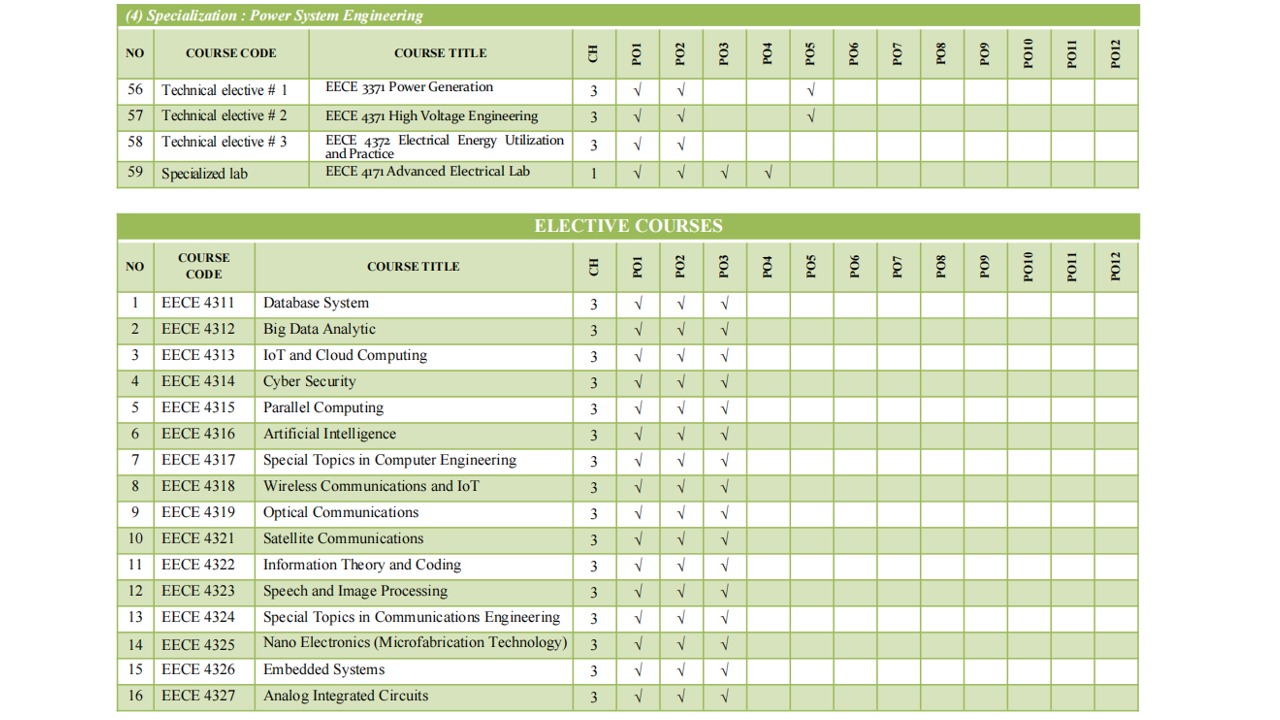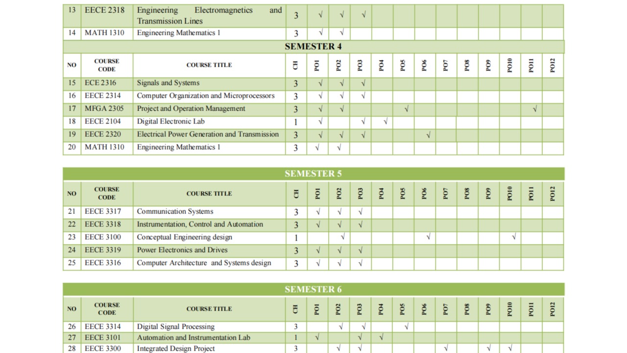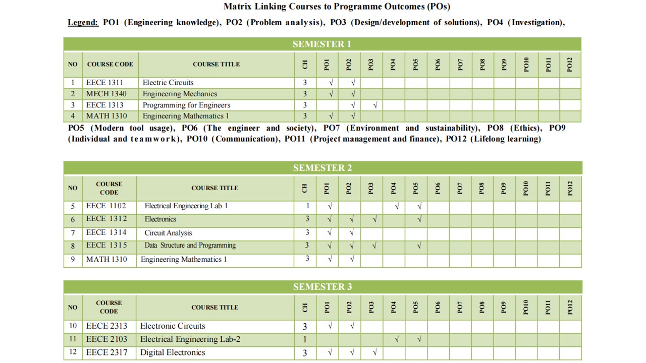 Matrix Linking Courses to Programme Outcomes (POs)